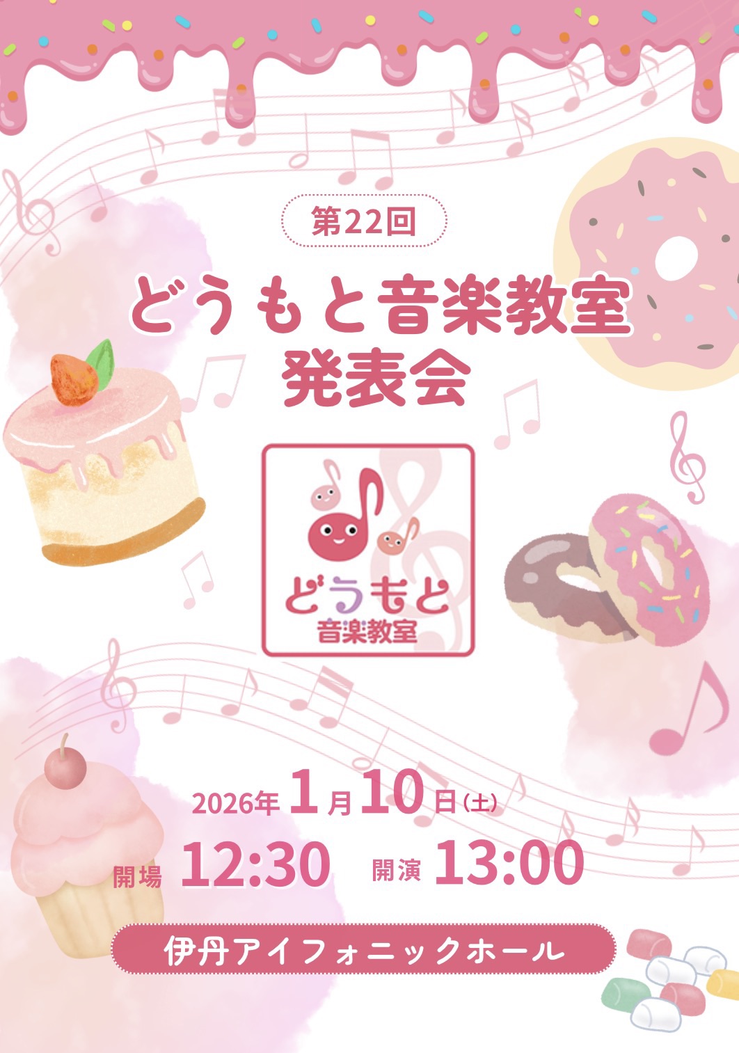 「どうもと音楽教室」の第22回発表会が2026年1月10日に行われます。